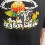 The design features an edgy, contemporary graphic that pays homage to the iconic Afghan Skunk strain, renowned for its potent effects and rich history. The intricate details of the design are printed with high-quality, fade-resistant ink, ensuring that the artwork remains vibrant and sharp even after numerous washes.