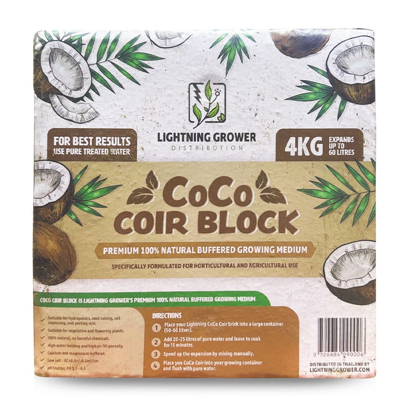Lightning Grower coco coir is thoroughly washed and almost completely free of salts, ensuring a clean and safe growing environment.