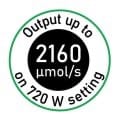 • The 720W Extreme High PPF Output: 2160 µmol/s of usable light boosts photosynthesis and drives stronger vegetative growth and flowering.